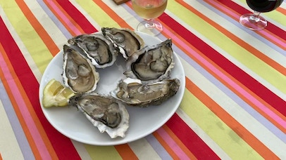 Après le petit-déjeuner, nous commençons la journée par un café au «Barathym» puis nous allons faire le marché au centre d’Arcachon (légumes, huîtres, etc.) Retour, toujours au soleil.