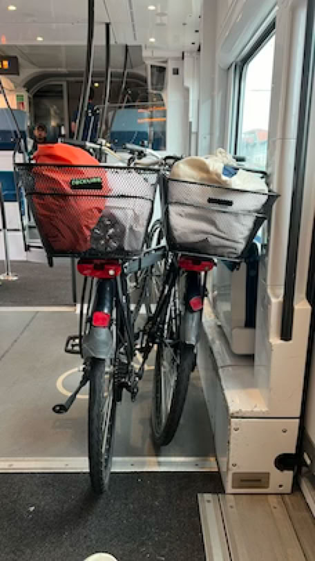A 10h, nous sommes en gare d’Arcachon, dans le TER à destination de Libourne, avec nos vélos. Le train va nous avancer jusqu’à Biganos, point de départ pour notre randonnée du jour vers Lacanau et le Cap-Ferret.