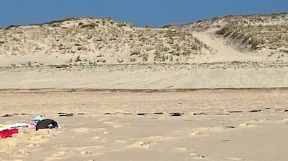 Profitant de notre journée supplémentaire, nous décidons d’aller à la plage de La Lagune côté Océan. En passant au Moulleau, nous prolongeons la location des vélos d’une journée, puis nous postons les cartes au Pyla, et enfin nous continuons vers l’Océan. Arrivée sur la plage, naturiste, au Sud de La Lagune. Nous avons la plage presque pour nous, très peu de monde, il fait bon et l’océan n’est pas trop agité. Nous profitons d’abord d’une excellente baignade, l’eau est très bonne, même Pierre y va : c’est dire ! Puis un bon moment tranquille au soleil pour une fin de journée vraiment très agréable. Pierre a même amené deux canelés, dégustés sur la plage. Il faut quand même penser à reprendre les vélos et remonter les fameuses côtes, mais ça se fait finalement sans trop de difficultés.