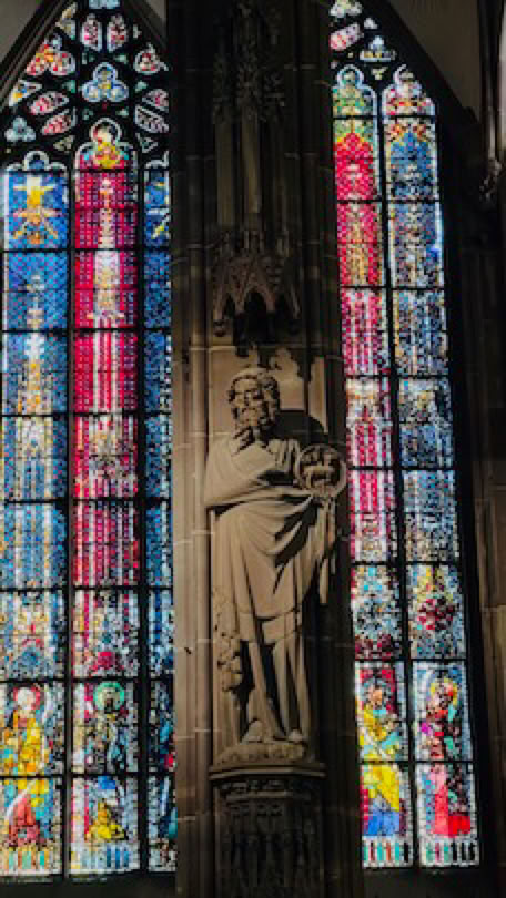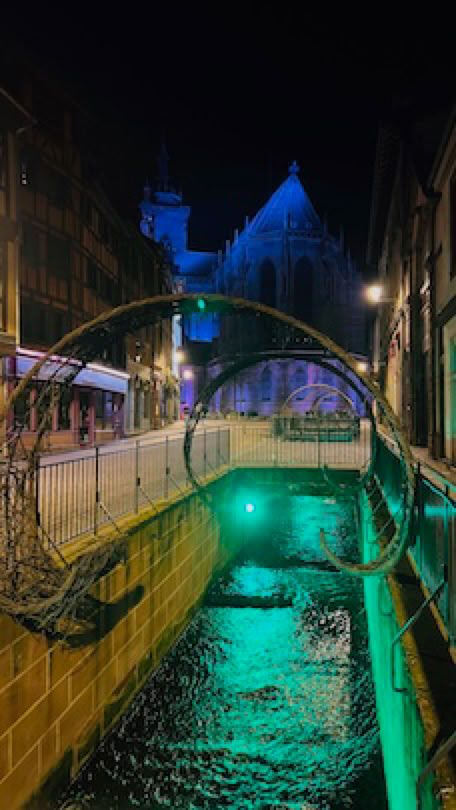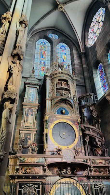 Nous embarquons dans le TGV de 10:25 pour Strasbourg où nous arrivons après 1h45 de voyage bien tranquille. Nous allons d’abord chercher les clés de notre voiture de location chez Sixt : ce sera une très belle BMW 120 M-Sport neuve (avec un petit supplément par rapport à la voiture réservée). Nous mettons nos bagages dans le coffre, mais avant de partir pour Colmar, nous partons faire un tour dans le centre historique de Strasbourg, sous un magnifique soleil. Flammekueche dans un restaurant près de la Cathédrale, visite de la Cathédrale avec en particulier son horloge astronomique, un tour dans la « Petite France ». Retour à la gare pour prendre la voiture, en route vers Colmar par les petites routes. Petite pause à Kintzheim et arrivée à Colmar. Nous laissons notre voiture dans un (cher) parking et nous terminons à pied jusqu’à notre charmant Airbnb, en plein coeur de la Petite Venise. Le soir, Pierre nous a trouvé un bon restaurant « Aux Armes de Colmar ». Cuisine traditionnelle soignée. Je prends une excellente choucroute et en dessert un kougelhopf glacé, bien aromatisé au marc de Gewurtz. Et nous dégustons un excellent vin d’Alsace, bio, «Charles Baur». Nous y reviendrons … Retour par la vieille ville joliment éclairée.