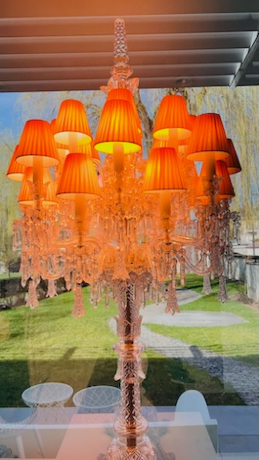 La petite ville présente assez peu d’intérêt, en dehors évidemment de sa célèbre cristallerie … qui ne se visite pas, et de son église Saint Remy, reconstruite en béton après la guerre et parée de vitraux composés de cristaux colorés de Baccarat (voir photo en haut de la page). Et donc nous visitons le musée « officiel » de la marque Baccarat. Evidemment, les pièces présentées sont magnifiques, présentées dans une ambiance sombre qui met en valeur la lumière qui traverse les pièces en cristal. Quelques pièces plus contemporaines sont présentées, ainsi que quelques magnifiques lustres. Malheureusement, le musée est réellement petit par rapport à la réputation de la marque et nous arrivons rapidement au café du musée. Très classe, et c’est l’occasion de prendre un café et un Coca dans des verres Baccarat :)
