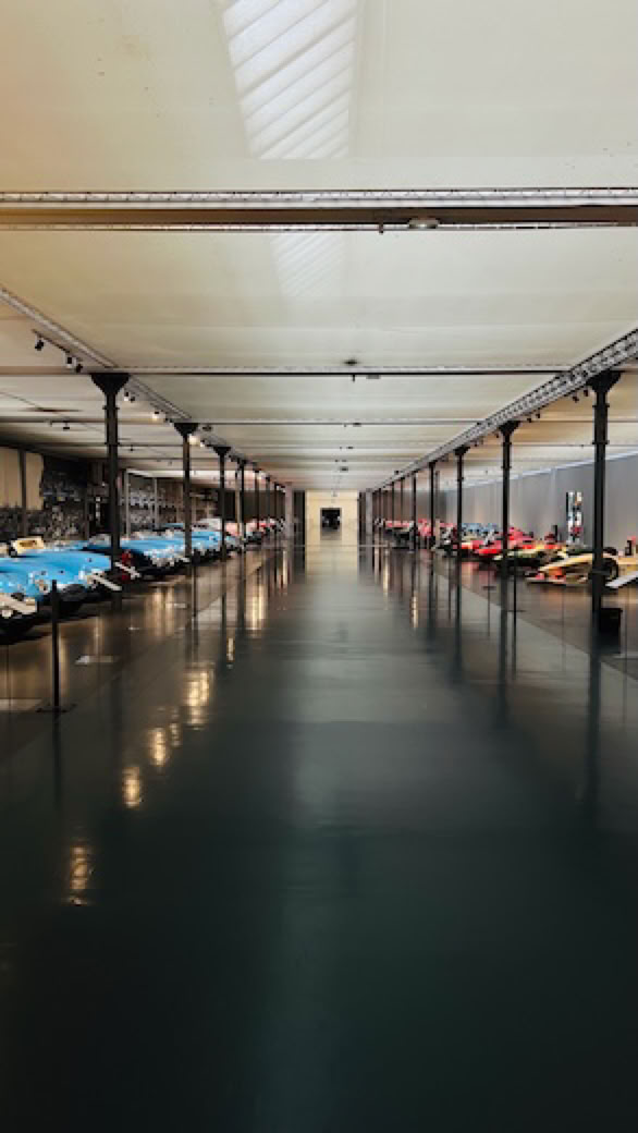 C’est sous un temps pluvieux que nous arrivons à Mulhouse et que nous nous garons devant le Musée National de l’Automobile - Collection Schlumpf. Ce n’est pas la première fois que je le visite, la dernière fois, c’était avec les enfants. Mais c’est toujours un étonnement de parcourir ces immenses allées bordées de lampadaires belle-époque et surtout par des centaines d’automobiles exceptionnelles posées sur du gravier blanc. Néanmoins, le musée se renouvelle petit à petit et une zone est en travaux pour une meilleure mise en valeur des uniques Bugatti Royales. Avant de quitter le musée, nous prenons évidemment un café au bar du Musée, et reprenons la voiture pour rejoindre la Cité du Train.
