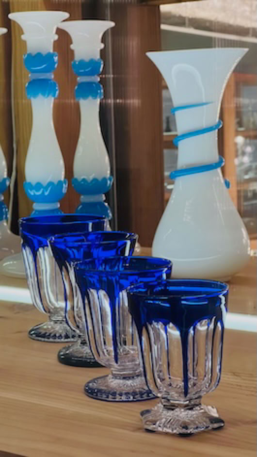 A la boutique, Pierre achète deux gobelets en cristal, que nous utiliserons pour le café.