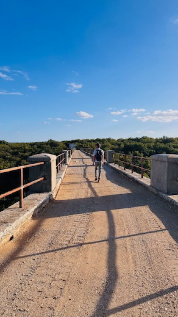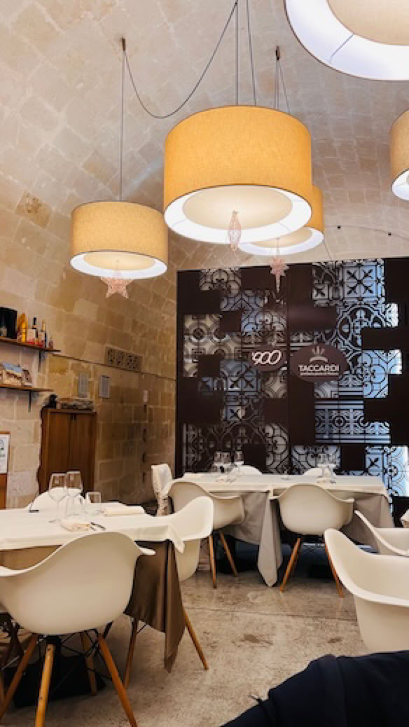 Nous reprenons la voiture et Pierre a repéré une randonnée pédestre à quinze kilomètres de là. Mais pour arriver au départ de cette randonnée, nous nous retrouvons avec la voiture sur un chemin de terre, plein de grands trous et de flaques. Mais nous avons une Jeep 4x4 et, au ralenti, nous arrivons au départ de la randonnée, dans un endroit très isolé. C’est parti. Le chemin passe d’abord dans la forêt, puis une petite route longe des plantations de vieux oliviers … mais aussi quelques maisons isolées avec des chiens très menaçants … heureusement derrière des grillages … mais bon, nous ne sommes guère rassurés. Nous arrivons au pied d’un aqueduc (pas romain), sur lequel est aménage le chemin de randonné. Belle vue sur la région. Nous continuons … y compris quand des panneaux indiquent que le passage est interdit … mais nous n’allons pas tout refaire dans l’autre sens. Petit moment de stress quand le chemin redescend dans la forêt et que nous entendons des voix … Finalement, aucun problème et nous retrouvons la voiture après 2h de marche, et avant le coucher du soleil. Retour à l’hôtel à Matera. Pierre nous a trouvé un restaurant, a priori dans le centre historique … mais en fait, à l’autre bout de la ville, hors du secteur touristique. Après une 1/2 heure de marche, nous arrivons au restaurant ‘900 Taccardi, extérieurement pas extraordinaire mais qui s’avère être une très bonne adresse. Je découvre au passage le Spritz Campari : plus amère, intéressant. J’aime bien.