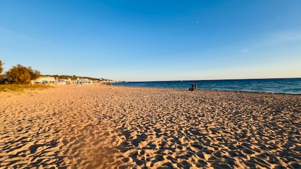 Nous reprenons la voiture vers Gallipoli, par une route de bord de mer. La lumière commence déjà prendre une couleur dorée et j’aperçois une jolie plage. On s’arrête à l’improviste pour un petit moment sur la plage. Evidemment, j’en profite pour me baigner, l’eau est excellente, la plage est presque déserte … à part une famille française.