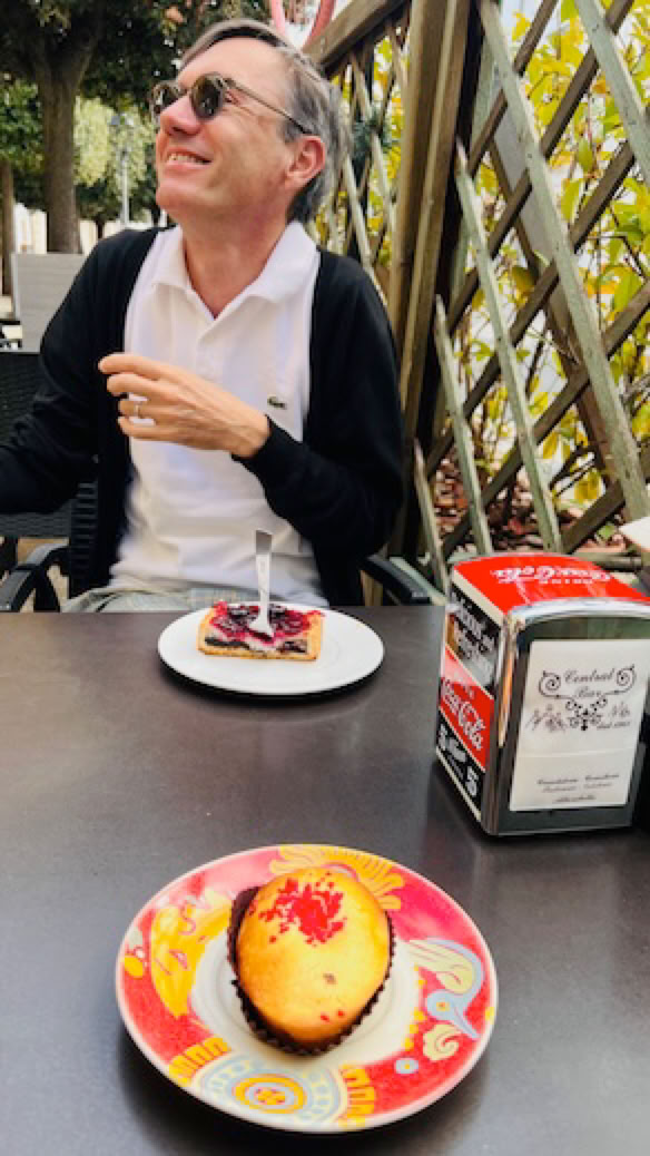 Impossible de séjourner à Polignano, surtout sous ce beau soleil, sans se baigner sur la plage au pied des falaises (la plage « Lama Monachile »). Et donc vers 10:30, je m’avance en maillot de bain sur les galets, glisse, et me retrouve rapidement dans l’eau ! En fait l’eau est vraiment très bonne (un 1er novembre …) et je passe un très bon moment dans l’eau, avec pas mal de poissons colorés à observer sous l’eau. Et le cadre pour nager est exceptionnel. Vu le nombre de touristes en surplomb de la plage, je me dis que je vais être sur beaucoup de photos :) ! Je resterais volontiers plus longtemps dans l’eau, mais Pierre m’attend au bord avec mes affaires. Encore un bon café en terrasse et nous retournons à l’hôtel pour prendre la Jeep, direction Alberobello : le lieu est célèbre pour ses « trulli », typiques de cette région. Ce sont d’anciennes habitations d’ouvriers agricoles, de forme circulaire, avec un toit conique en pierre. On en voit déjà dans la belle campagne en approchant d’Alberobello. Nous garons la voiture, gratuitement cette fois, un peu à l’écart du centre. Nous visitons la Chiesa dei Santi Cosma et Damiano puis rejoignons le quartier des trulli. Honnêtement, c’est un peu Disneyland, avec beaucoup de touristes et des centaines de trulli parfaitement blancs avec leurs toits de pierre impeccables et des boutiques de souvenir à l’intérieur. C’est néanmoins à voir et assez surprenant. On arrive quand même à trouver un endroit isolé pour se faire un beau selfie avec un trulli. Nous remontons en ville pour boire et manger un bon gâteau au Central Bar.