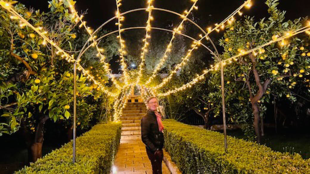 Nous arrivons finalement à Polignano a Mare. Notre résidence se trouve curieusement proche de la voie rapide, mais l’endroit est néanmoins plaisant et bien protégé, comme un petite résidence tropicale, avec les logements organisés autour d’une piscine, un bar de plein air, des palmiers, etc. La chambre est confortable. Le jeune réceptionniste nous conseille un restaurant pour le dîner, la « Villa degli Aranci » (villa des oranges). Très bel endroit, cuisine soignée, les filets de mon poisson du jour grillé sont levés devant nous sur une desserte, dessert local … Et le jardin du restaurant est une belle orangeraie, éclairée, dans laquelle nous nous promenons un peu avant d’aller découvrir le centre historique et la fameuse plage de Polignano au pied de falaises.