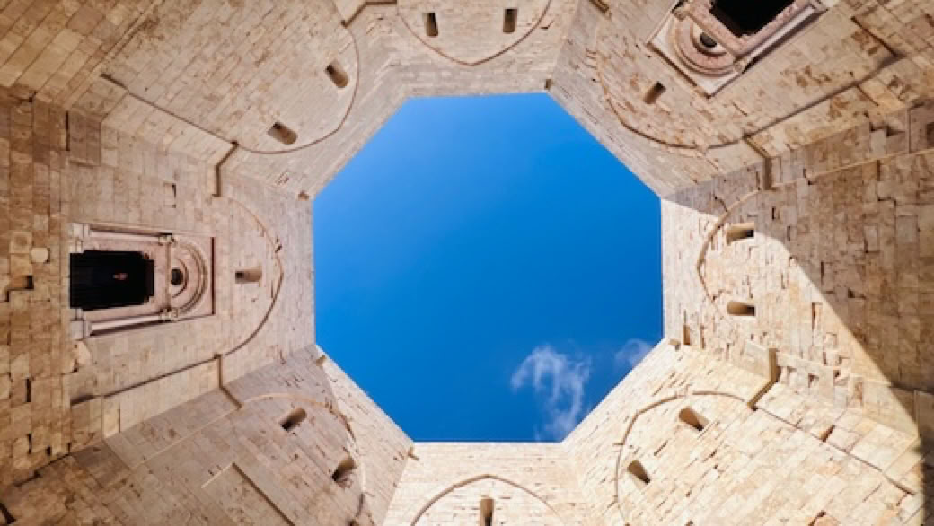 Aujourd’hui, nous prenons la Jeep pour aller au château de Castel del Monte, à environ 70km au Nord de Matera. Isolé sur une hauteur, il découvre sa forme particulière au sortir de la forêt qui l’entoure. Tout le château est construit selon un plan octogonal régulier, qui se reproduit aussi pour chacune des 8 tours à chaque angle ou dans la cour intérieure. Cette forme lui donne une silhouette très caractéristique qui se détache sous le beau ciel bleu du jour. Après la visite de l’intérieur du chateau et un café en terrasse, nous entreprenons une petite randonnée tout autour de la butte. Il fait vraiment beau et les couleurs d’automne des vergers et des vignes ressortent sous le soleil.