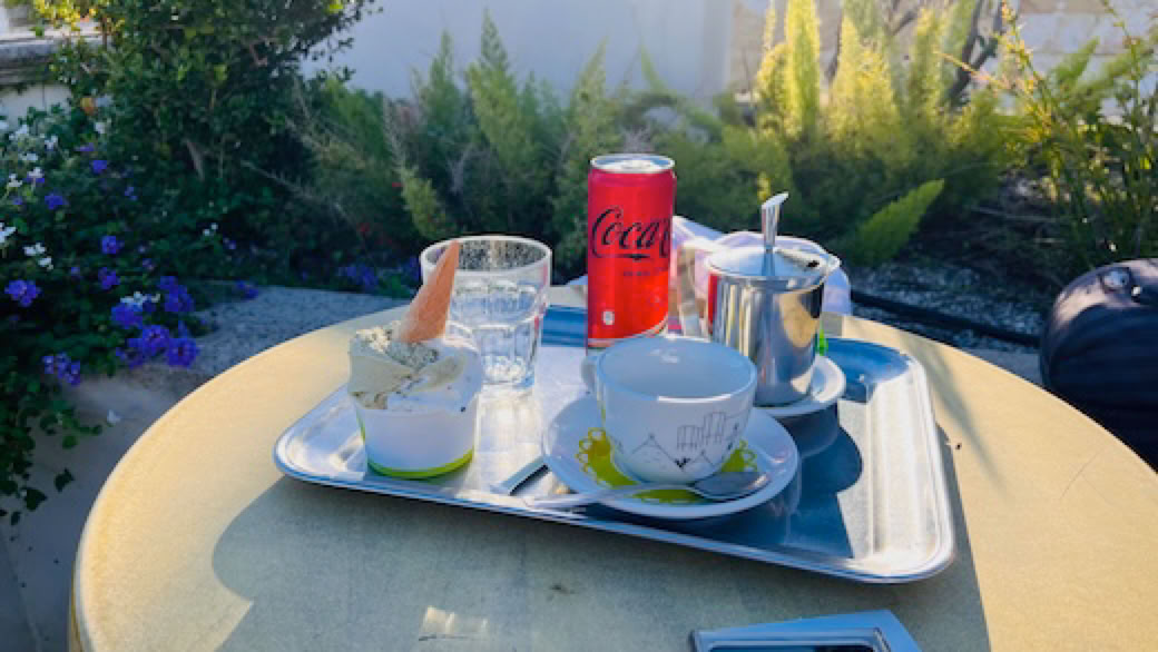 Nous redescendons les grands escaliers, regardons deux jeunes en train de s’entrainer à la varappe à l’entrée des grottes marines, rejoignons le port en passant par des passerelles en bois vermoulu et trouvons en haut d’une petite rue, un café pour boire un verre … et manger une bonne glace.